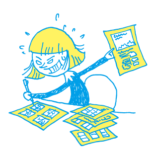 とにかく描きます。考えがまとまっていなくても描きます。そのうちマグレで良いのが出来ます。