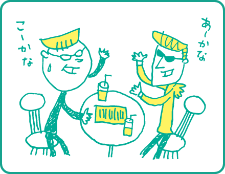 「ここで一緒に考えようや!」ということで、容赦なくグッドアイディアをその場で求めてこられます。こちらも超能力者ではないので、いたって普通のことしか言えず、相手を不安にさせてしまいます。